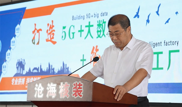 潘佳庭在致辭時(shí)指出,近年來,鹽山縣圍繞產(chǎn)業(yè)轉(zhuǎn)型升級(jí),加快智能化生產(chǎn)管理進(jìn)程,努力推進(jìn)管道裝備產(chǎn)業(yè)向數(shù)字化轉(zhuǎn)型和智能化提升,實(shí)現(xiàn)管道裝備產(chǎn)業(yè)智能制造、智慧運(yùn)行。滄海核裝備科技股份有限公司作為我縣高 端管道制造企業(yè),積極響應(yīng)政府號(hào)召,與國(guó)內(nèi)知名科研院所和運(yùn)營(yíng)商合作,謀劃了“5G+大數(shù)據(jù)+管道智能工廠”項(xiàng)目,該項(xiàng)目的實(shí)施將進(jìn)一步加快推動(dòng)全縣工業(yè)轉(zhuǎn)型升級(jí)步伐,為鹽山經(jīng)濟(jì)社會(huì)高質(zhì)量發(fā)展注入新的活力。
